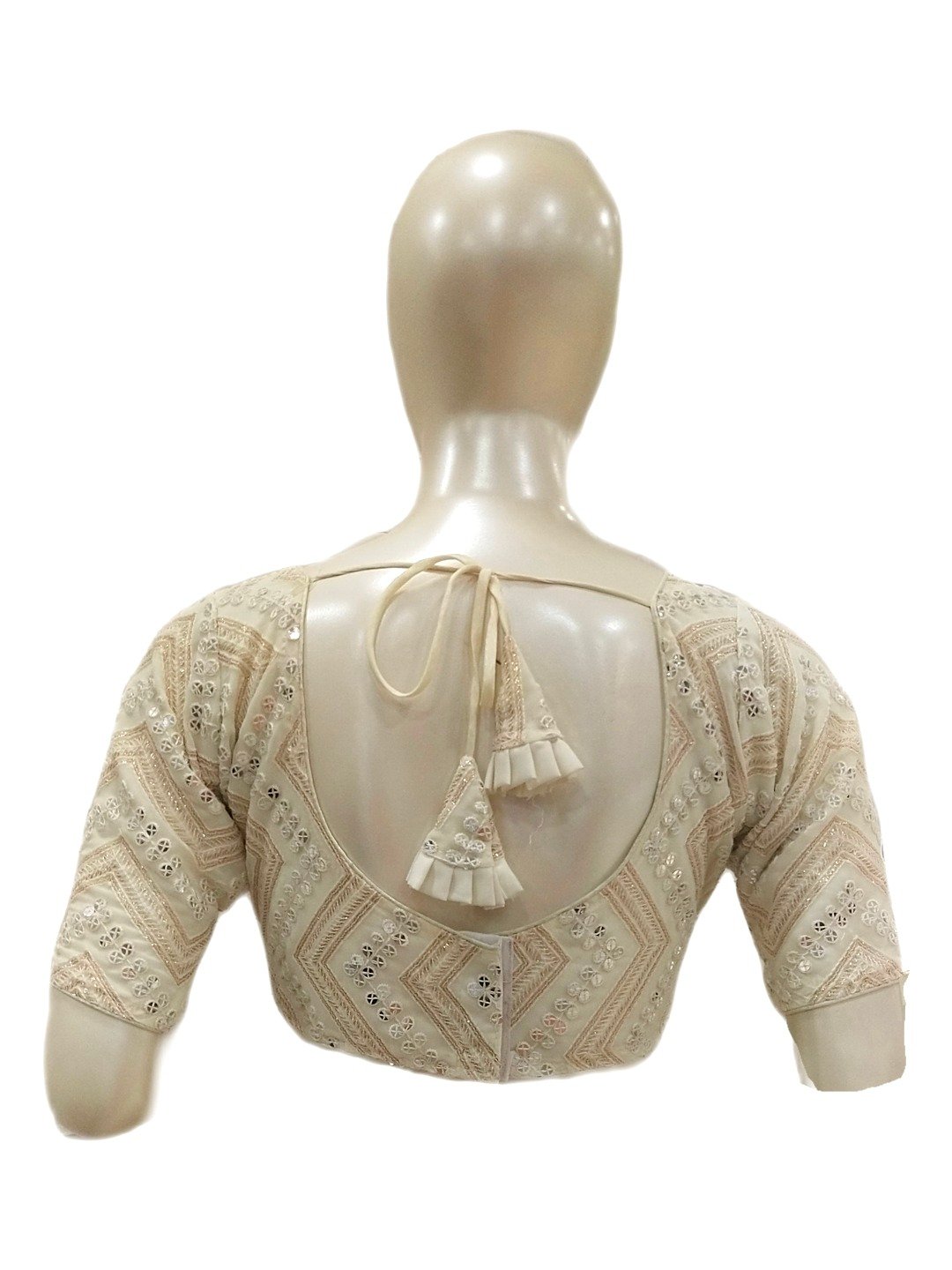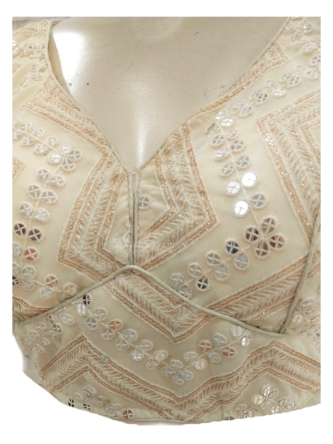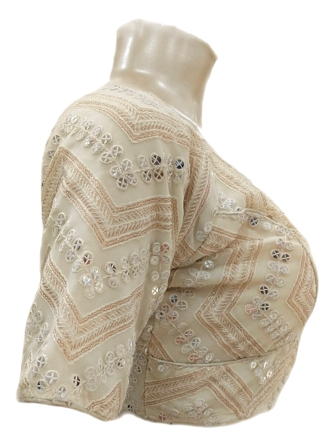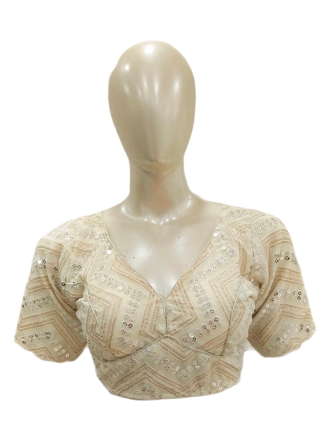 JASVI COLLECTIONS brings you a Cream Colour Blouse with silver Golden Sequins and Embroidery.